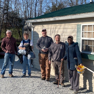 The team was quite busy during the week they were in Kentucky, despite some setbacks on the timing of some of the materials, and the cold mornings! Together, with two additional local SCN volunteers, the team built a 10’ x 12’ deck to improve Ms. Flowers’ ability to enjoy outside time on her uneven terrain. They also power washed and cleaned the outside of her home. In addition to the deck, the team had time to build an additional shed for storage and lay rock to improve her drainage flow away from the foundation of the house. Meanwhile, the inside of Ms. Flowers’ home was also being tended to with cleaning, spackling and painting.